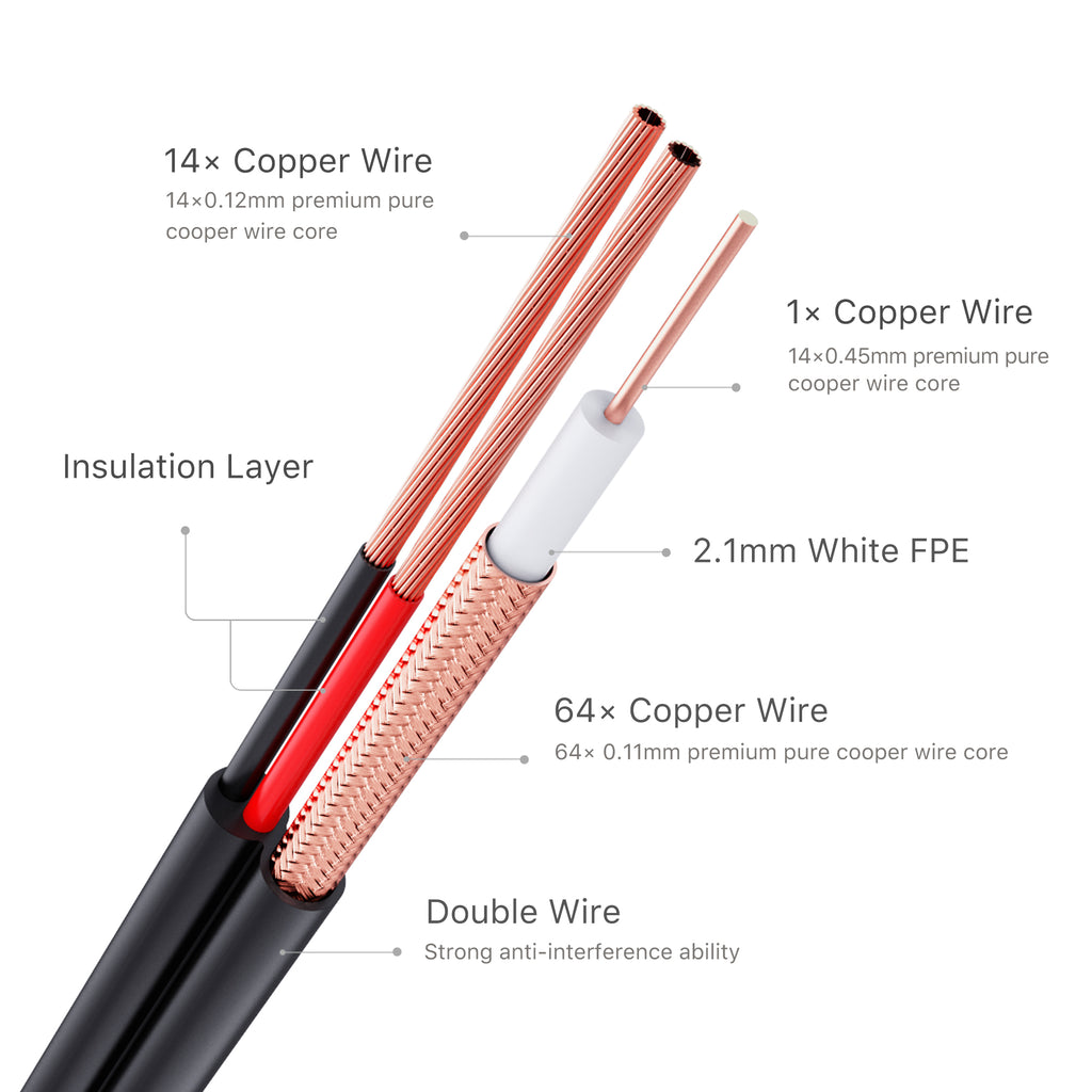 2.The black cable is made of pure copper material, pvc-45p molding, it's weatherproof, allows for use indoors and outdoors