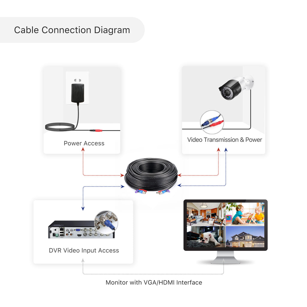 1.300ft pre-made cable BNC and Power Ready To Go mini RG59 Cable