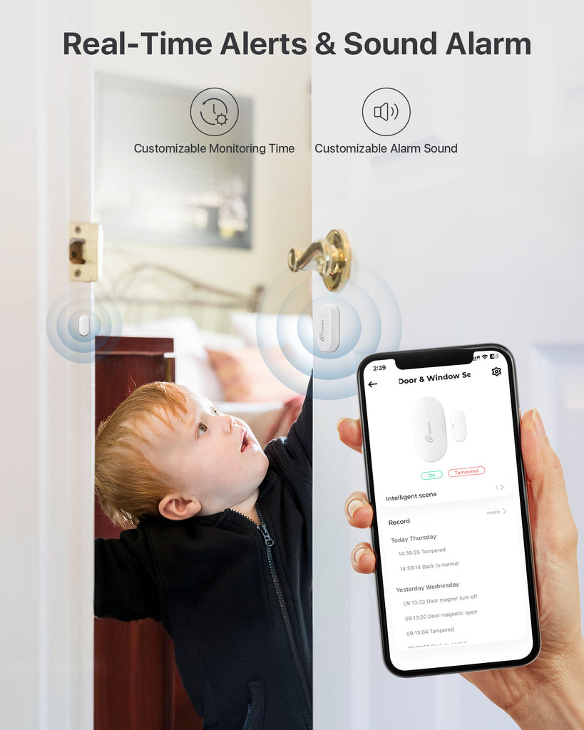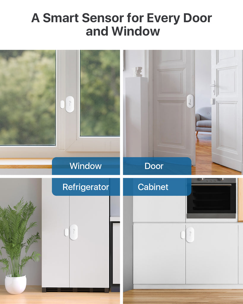 - 【Easy Installation, Versatile Applications】No installation tools needed, simply start the journey of smart home. Our smart door sensor stick to any location you want with 3M adhesive (included), just wipe the door, window or wall and keep it dry before use, which greatly saves your time. In addition to doors and windows, you can also use it on drawers, refrigerators, garage doors, storage cabinets and other areas.