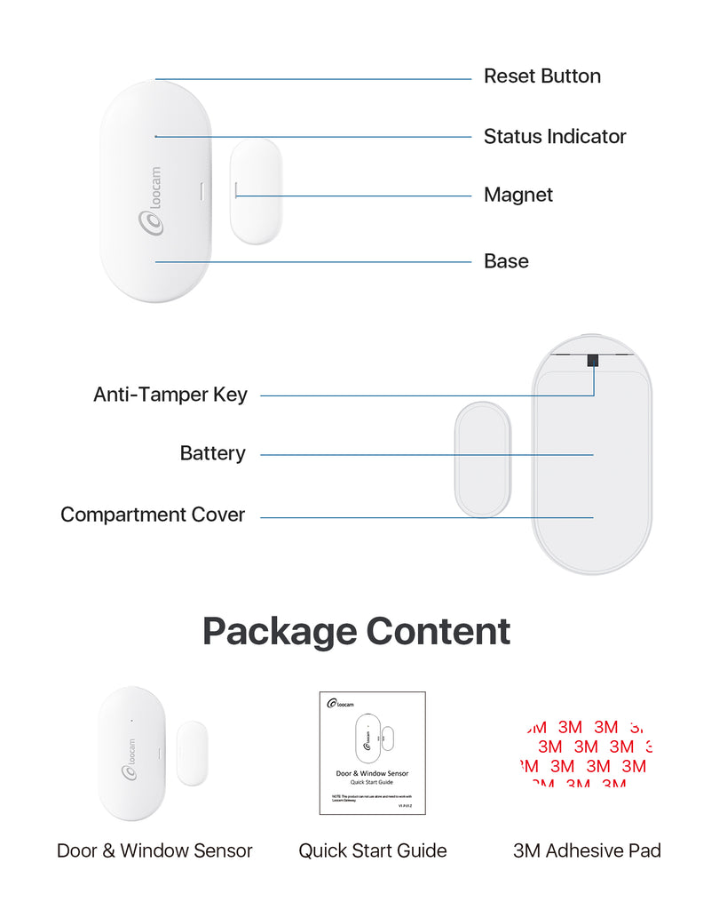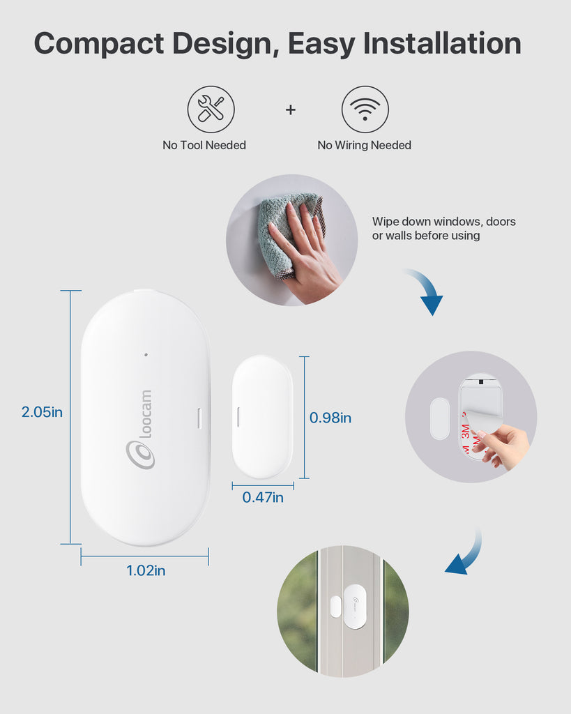 - 【Anti-Tampering Design, Durable Battery】Our door sensor alarm features an anti-tampering design, which triggers the gateway to sound an audible alarm when accidentally removed and sends a real-time push notification to Loocam APP. The contact sensor's battery can last up to 1 year of normal use, and you will receive instant notifications from the app when the battery level falls below 20%.