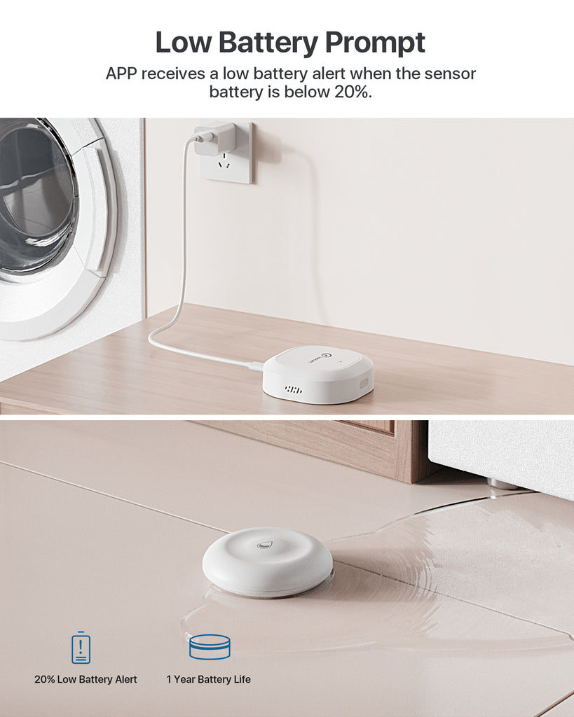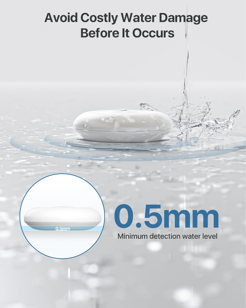 - Highly Sensitive Monitoring: The wifi water sensor, armed with dual bottom probes, detects even the slightest water levels of 0.019 inches (0.5mm). Immediate wireless alarm signals sent to the gateway help minimize potential damages.