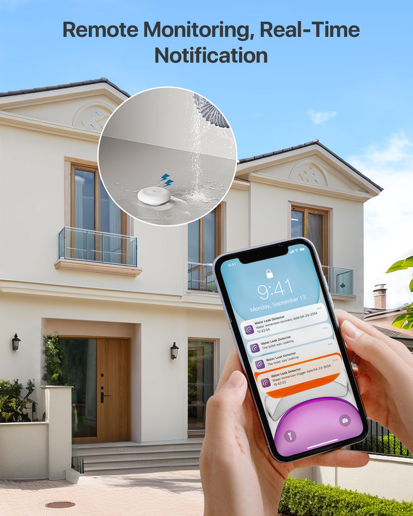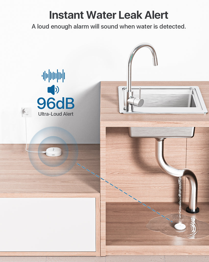 - Instant Notifications: Receive push alerts directly on your smartphone as soon as a water leak is detected. The gateway's loud 96-decibel alarm ensures prompt leak localization. Share water sensor alarm access with family to stay protected even when away.