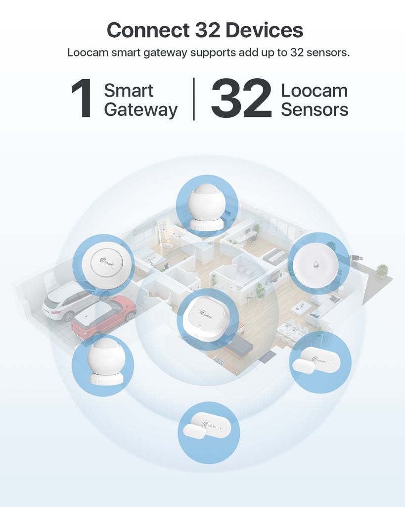 - Remote Monitoring: With the Loocam zigbee gateway and 3 water sensor kit, you can monitor the sensors remotely through the Loocam app for 24/7 water detection to give you peace of mind. The water detector alarm only supports 2.4GHz WiFi, the zigbee hub gateway can support up to 32 Loocam sensors.