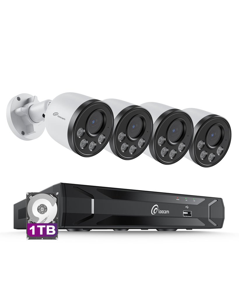 Loocam 2.5K PoE Security IP Camera System 1TB, AI Smart Human/Vehicle Detection, One-Way Audio