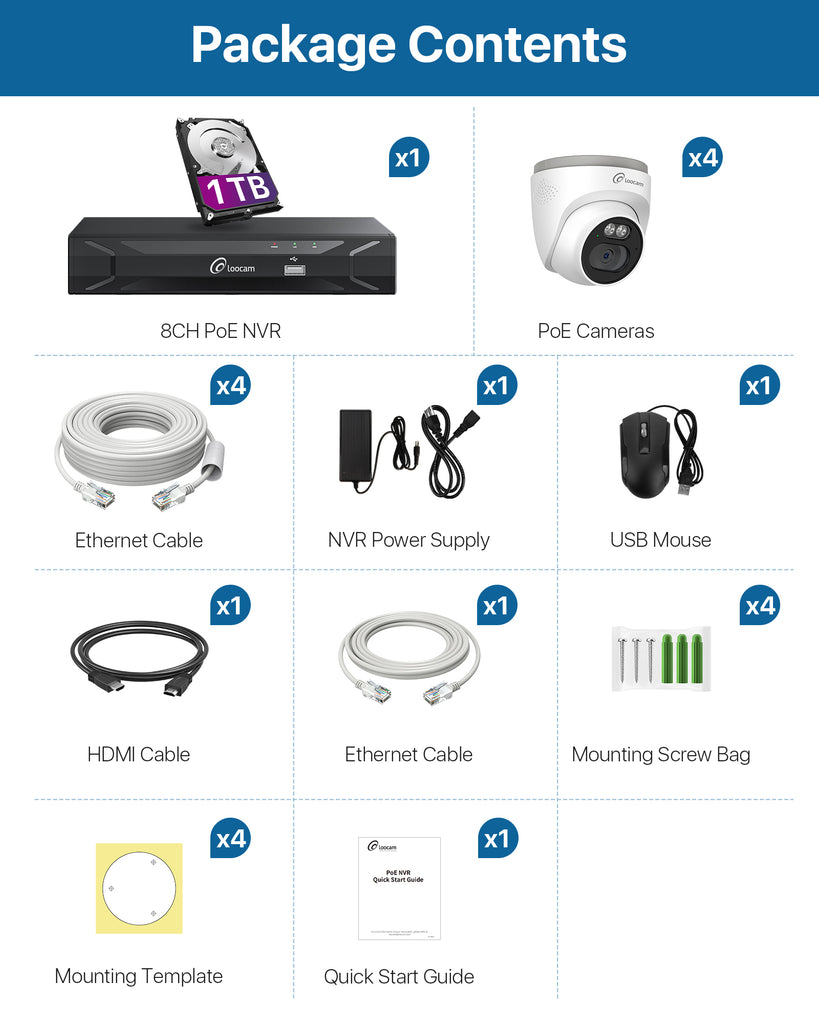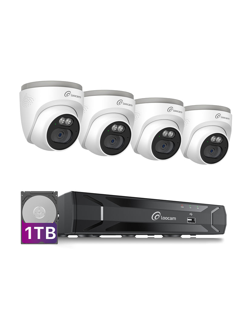 Loocam 2.5K PoE Security IP Camera System 1TB, Two-Way Audio, Person Detection, Easy Remote Access
