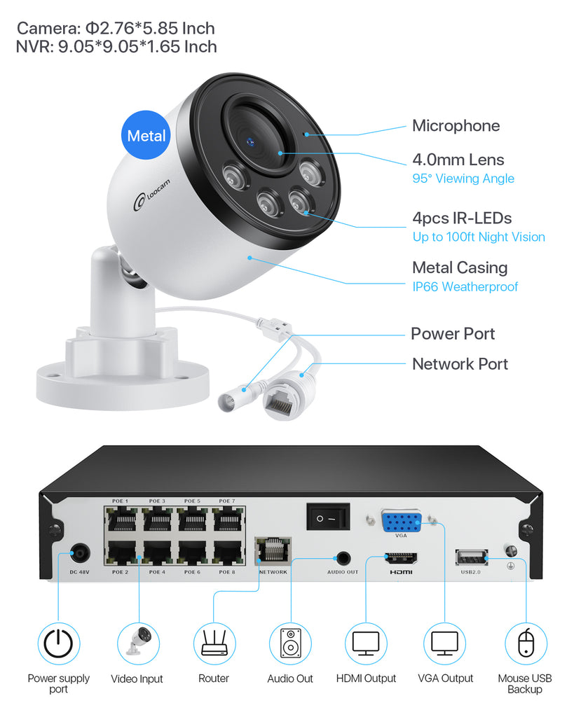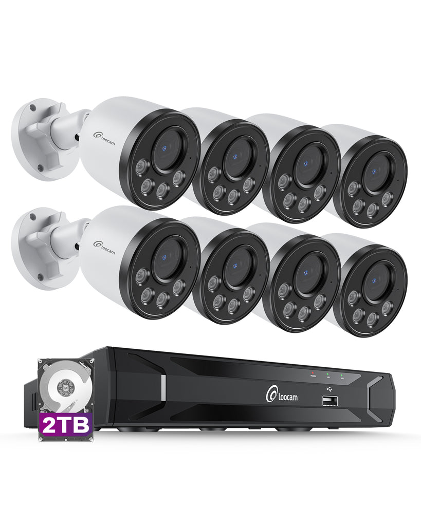 Loocam 2.5K PoE Security IP Camera System 2TB, AI Smart Human/Vehicle Detection, One-Way Audio