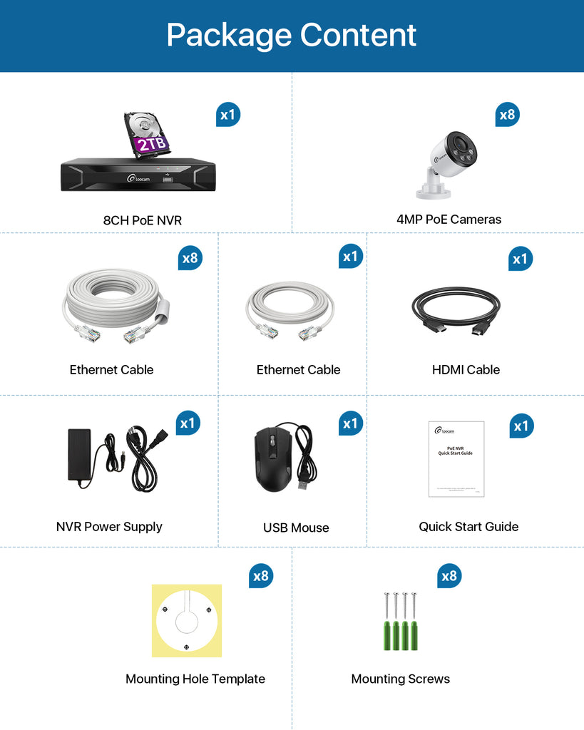 - Pre-installed 2TB HDD: Comes with a built-in 2TB hard drive, offering ample storage for continuous/schedule/motion detection video recording.