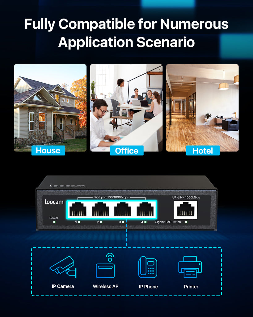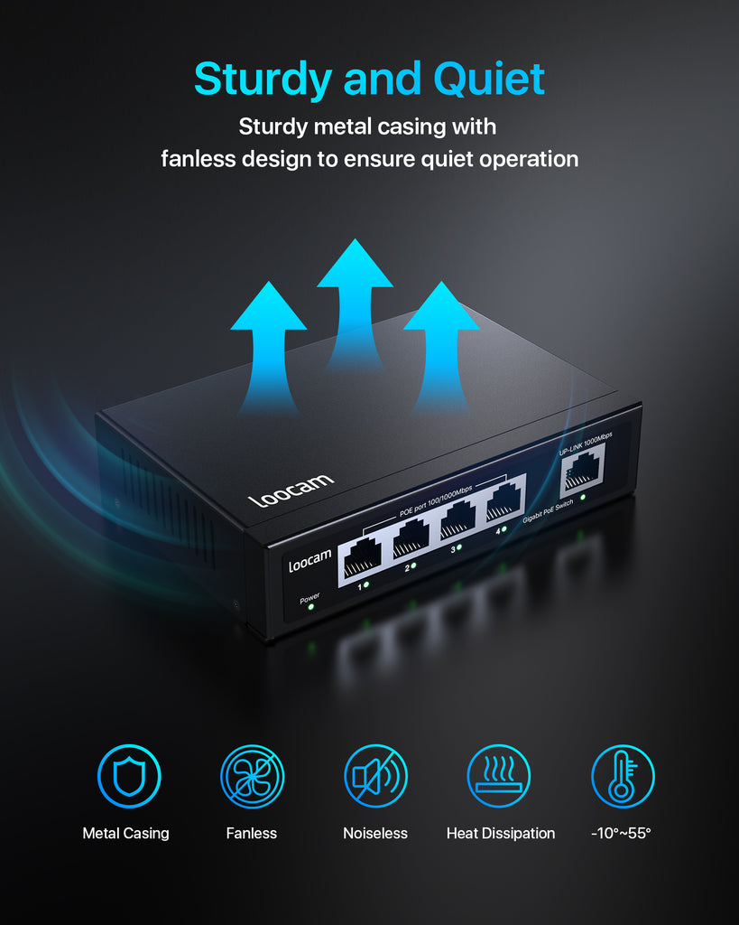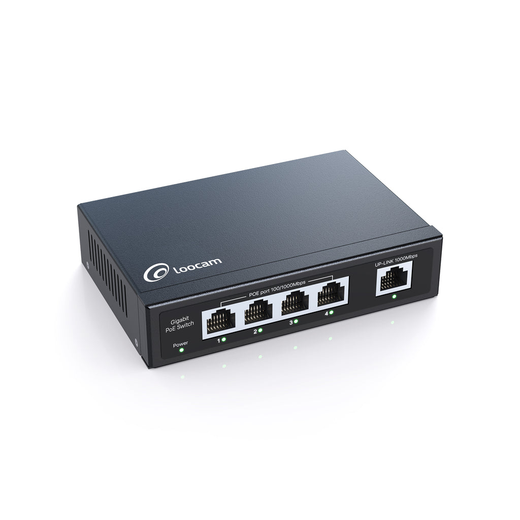 Loocam 5 Port Gigabit PoE Switch - 4 Port PoE+ @ 65W and 1 Uplink Port, Unmanaged Ethernet Network Switch PoE, Plug and Play