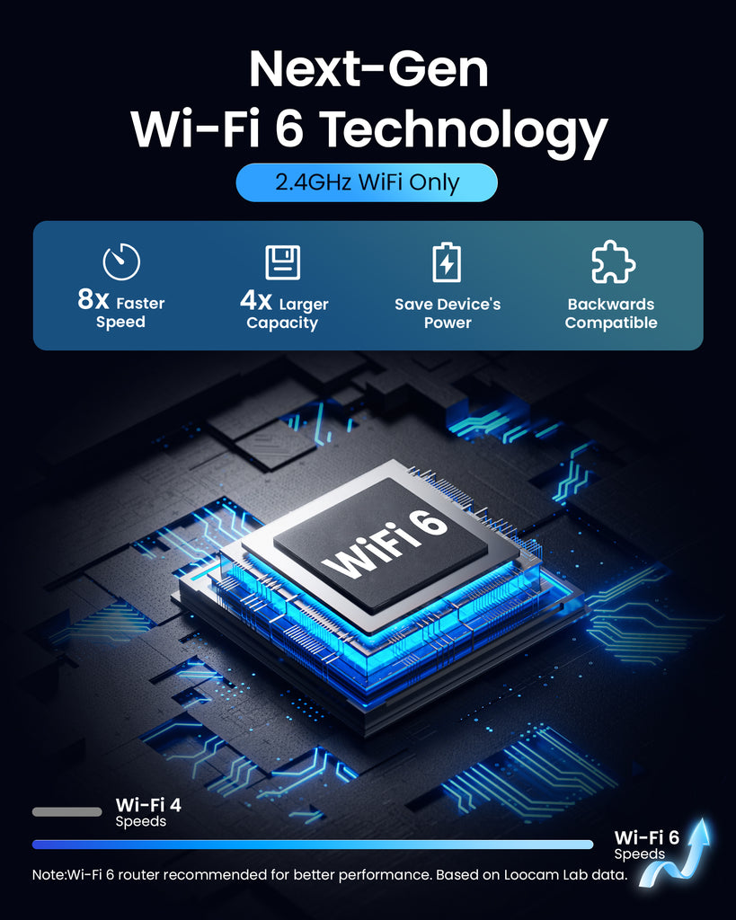 - 8 Channel Next-Gen WiFi 6 Security Camera System: With cutting-edge Wi-Fi 6 tech and dual-antenna boost, your videos will zip through at up to 8x the speed, with way less lag, 4x more room to play, less juice sipping, and a longer life for the cameras. Note: Wi-Fi 6 router recommended for better performance (Only Supports 2.4GHz WiFi)