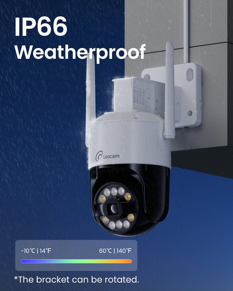 - 360° Rotatable Bracket, IP66 Weatherproof Rating:The outdoor security camera has a 360° rotatable bracket to change the monitoring angle at will, flexible to install on the wall or ceiling. Equipped with IP66 weatherproof rating, it can work normally in temperature: -10℃~+60℃ (14°F~140°F), which makes this video surveillance camera system can be used indoors and outdoors.