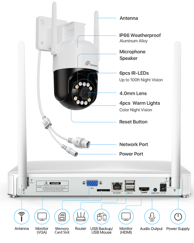 Loocam 4K Wireless Security Camera System Wi-Fi 6, Color Night Vision, 355° Pan 95° Tilt, Light & Siren Alarm, Human Vehicle Detection, 8CH 4K NVR 1TB HDD Included