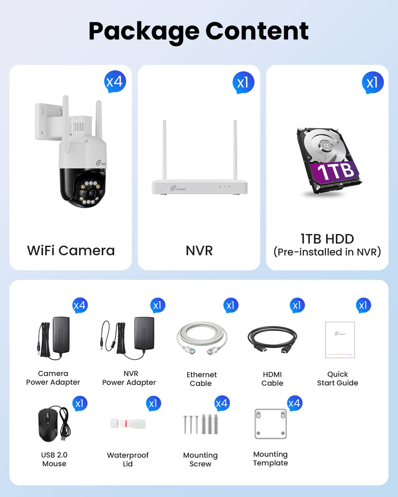 - Remote View and Playback Anytime, Anywhere: The nvr camera security system comes with a pre-installed 1TB hard disk, expandable to 8TB. In 3 simple steps, plug in your complete surveillance system, download the Loocam APP/AVSS, and remotely view and playback video from your smartphone and tablet anytime, anywhere. Enjoy smart security at your fingertips without any ongoing subscription.