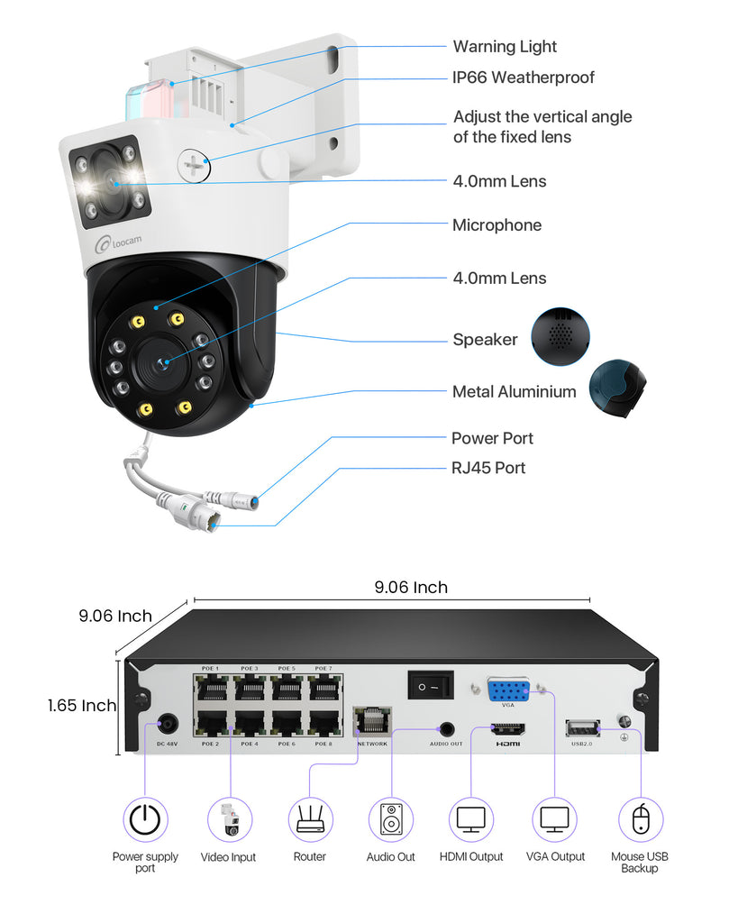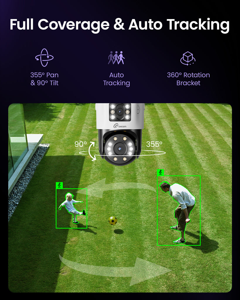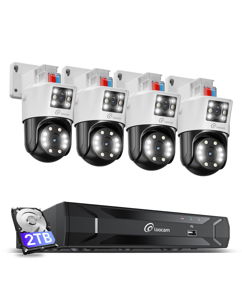 Loocam 8-Channel 4K(4MP+4MP) Dual Lens PoE Camera System 2TB HDD, Wired PT Spotlight Cameras, Smart Human Vehicle Detection