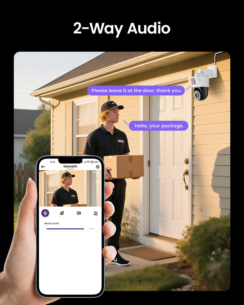 Remote access and Two-way audio: watch live footage and replay recordings anytime via the loocam APP. Two-way audio lets you talk directly through the camera, enhancing security and communication