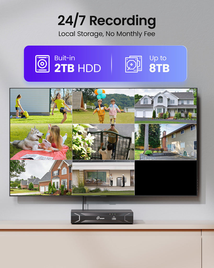 Pre-installed 2TB HDD and plug and play PoE: PoE setup ensures stable power and data transmission with a single network cable. The 4K PoE NVR includes a pre-installed 2TB security grade HDD (expandable to 8TB) for continuous and secure local storage.