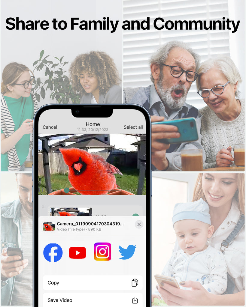 - 【Perfect Gift for Bird Lovers & Easy Sharing】Bird feeder with camera is not only a practical tool for bird watching, but also a thoughtful gift for bird lovers. Share the joy of bird watching with friends and family by easily capturing and sharing exciting bird moments. With features such as multi-user sharing and easy photo and video sharing, it strengthens the bond between loved ones while promoting a deeper connection with nature.