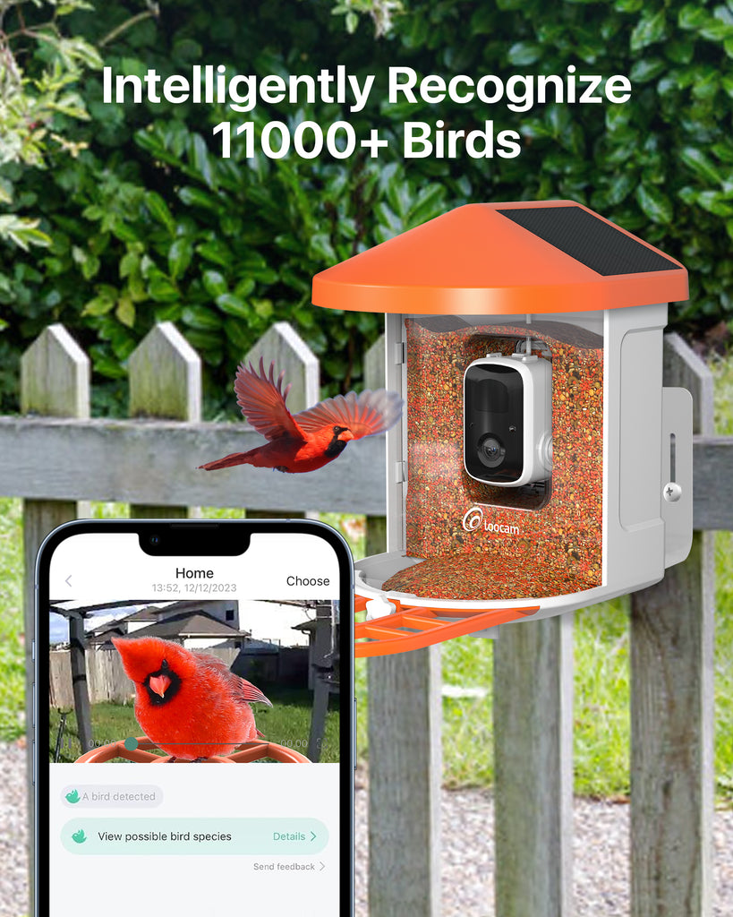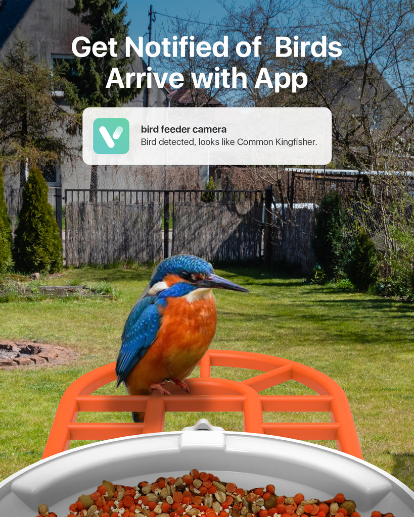 - 【Stay Connected with Real-Time Bird Alerts】Stay informed about bird activity with smart bird feeder camera's real-time notification feature. Receive instant alerts on your phone whenever birds visit(VicoHome App), ensuring you never miss a bird moment. The built-in two-way audio and siren alarm feature can help you scare away unwanted animals like squirrels. Enjoy the convenience of staying in touch with the birds in your backyard, day or night. (Only supports 2.4GHz WiFi)