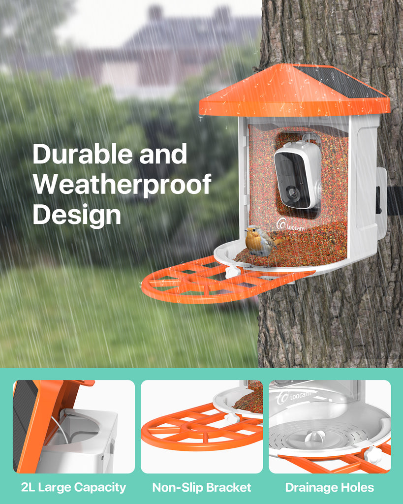 - 【Smart AI Identify 11000+ Bird Species】Equipped with powerful AI algorithm, Loocam bird feeder with camera can recognize 11,000 bird species. Gain detailed information about each bird through a subscription service, providing unique and enjoyable bird watching experience for both beginners and seasoned bird enthusiasts. Embrace nature like never before as you watch, enjoy, and interact with the variety of birds around you. (30-Day Free-Trial Cloud Storage, Lifetime 3-day Loop Free Cloud)