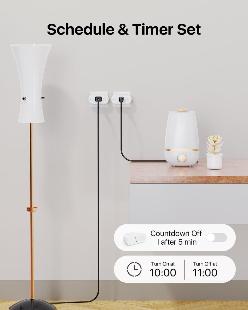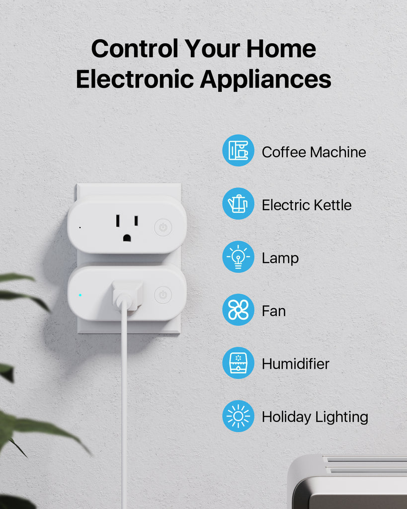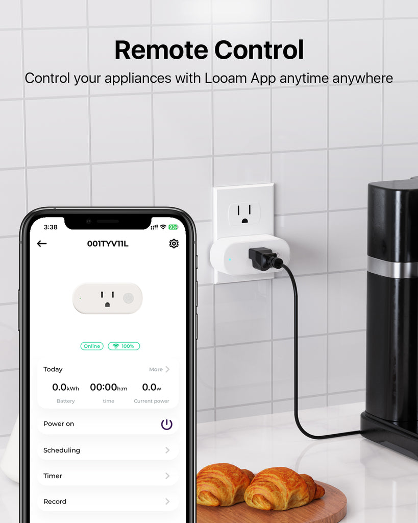 - Remote Timer Outlet: Manage your home appliances effortlessly from anywhere using the Loocam APP. With just a few taps, you can set a timer to automatically turn on/off like coffee machine, electric kettle, lamp, fan, humidifier, holiday lighting, etc. after a set time. The countdown timer offers up to 24 hours of flexibility, ensuring both energy efficiency and convenience.