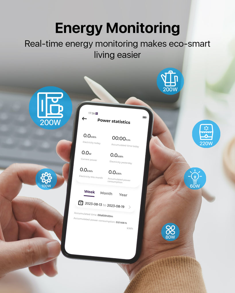- Super Easy Setup: Setting up the Loocam smart plug is a breeze. Simply download the Loocam app, plug in the smart outlet plug, turn on Bluetooth, and connect the device to your Wi-Fi network (2.4GHz). Within minutes, you'll have full control over your connected appliance, while also being able to monitor its power consumption in real-time.
