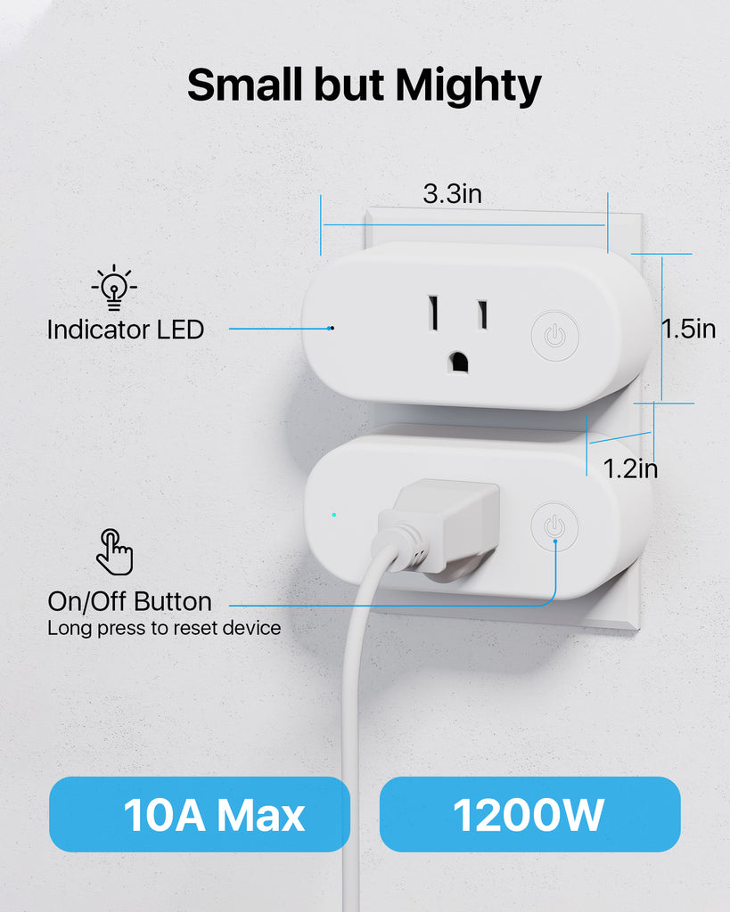 - Powerful yet Portable: The Loocam smart socket weighs a mere 36g and measures a compact 3.3x1.5x1.2 inches. This wifi outlet boasts a rated power of 1200W(10A), supporting a rated voltage of 110V~120V. Its sleek and flexible design saves space, making this smart home plug a suitable fit for any corner of your room.