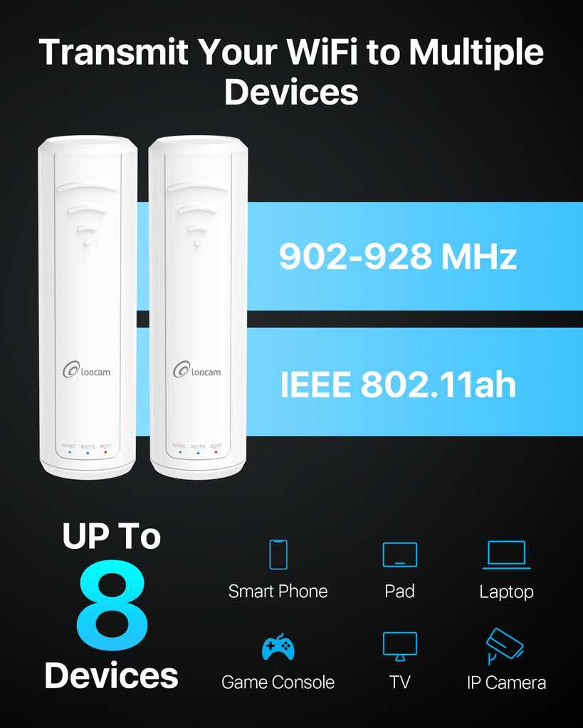 - 902MHz-928MHz with WiFi HaLow Technology: WiFi Ethernet Bridge integrated with WiFi HaLow technology, operating within the 902MHz-928MHz band, enabling transmission distances of up to 500ft through obstacles. Say goodbye to dropped calls and freezes, provides robust stability and ensures a seamless online experience.